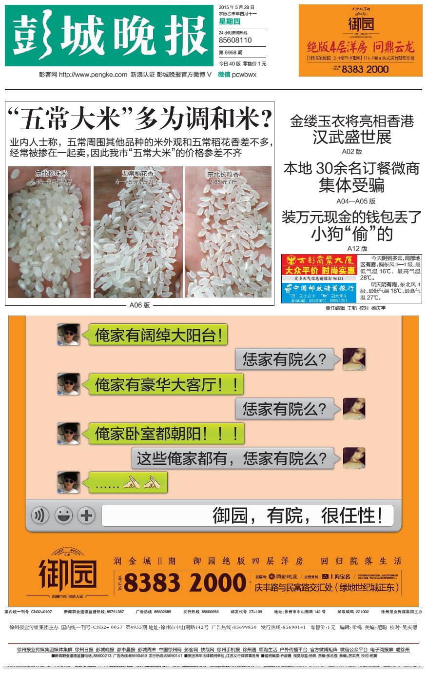 《彭城晚报》是徐州地区区域性的报纸,是一版针对主流社会,锁定主流人群吸引主流读者的报纸。